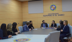 El acto, celebrado ayer en la sala vip del Rectorado (Edificio A), también ha contado con la presencia de la directora de la Fundación UAX, Dña. Carmen Caballero Hernando; de la decana de la Facultad de Ciencias Sociales, Dña. Luisa Fernanda Rodríguez Hevia; así como de la coordinadora del Máster en Abogacía (OMUB), Dña. María Luisa García Torres; y de la coordinadora de Prácticas del OMUB, Dña. Verónica Juliana Caicedo Buitrago.