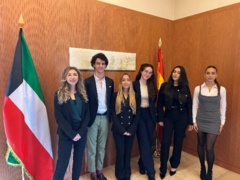 Ocho estudiantes de la UAX, del área de Relaciones Internacionales y Derecho, acudieron a la Embajada de Kuwait en Madrid para prepararse de cara a su participación en el National Model United Nations, Nueva York (EE.UU), donde competirán en el más prestigioso simulacro de Naciones Unidas, dirigido a jóvenes universitarios de todo el mundo y los cuales participarán en representación de Kuwait. Estos estudiantes han tenido la oportunidad de entrevistarse junto al embajador Khalifa M. Kh. H. Alkhorafi con el propósito de conocer la realidad del país, contar con su bagaje experiencial y valiosas recomendaciones.