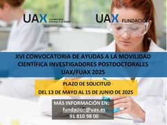XVI CONVOCATORIA DE AYUDAS A LA MOVILIDAD CIENTÍFICA INVESTIGADORES POSTDOCTORALES–UAX/FUAX 2025