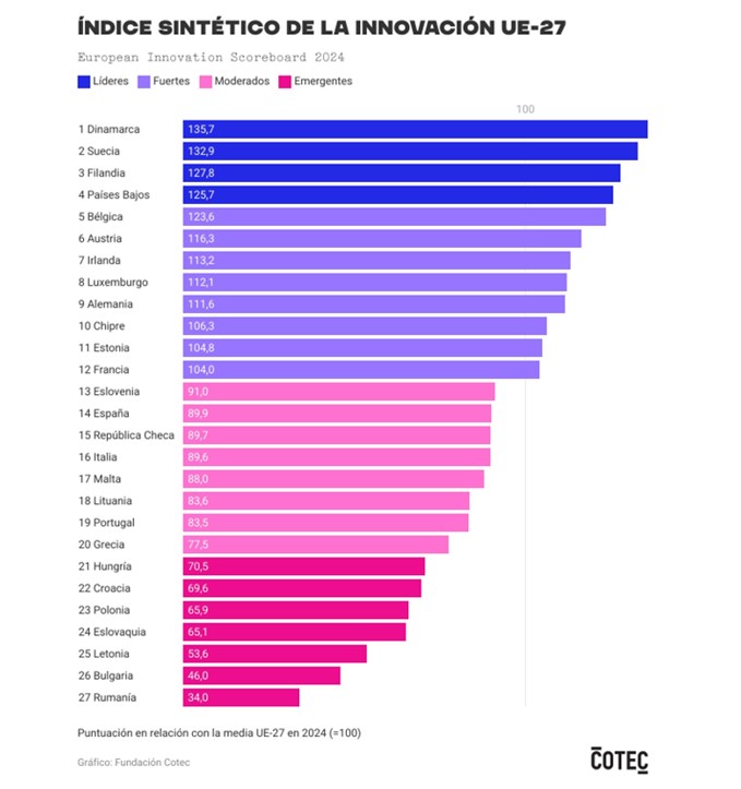 Otro dato positivo que deja el último tablero europeo de innovación es que España asciende dos posiciones, de la 16 a la 14, dejando atrás a Italia y República Checa.