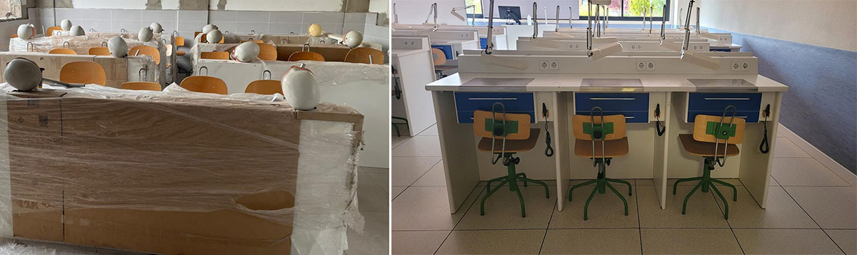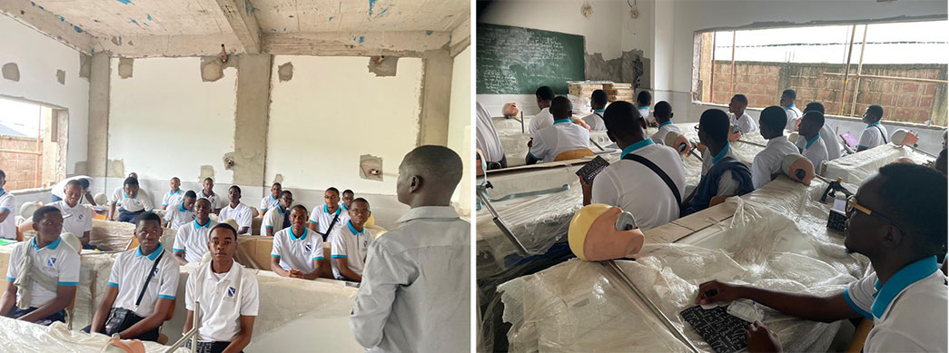 El pasado verano los laboratorios de Odontología del Campus de Villanueva fueron renovados. El material sustituido, en perfecto estado, fue donado a la ONG Fundación Amigos de Monkole en Kinshasa (República Democrática del Congo) y será reutilizado en un proyecto de Formación de Técnicos que la organización está llevando adelante. En las imágenes se puede ver cómo el material UAX está siendo utilizado para la formación de estudiantes congoleños.